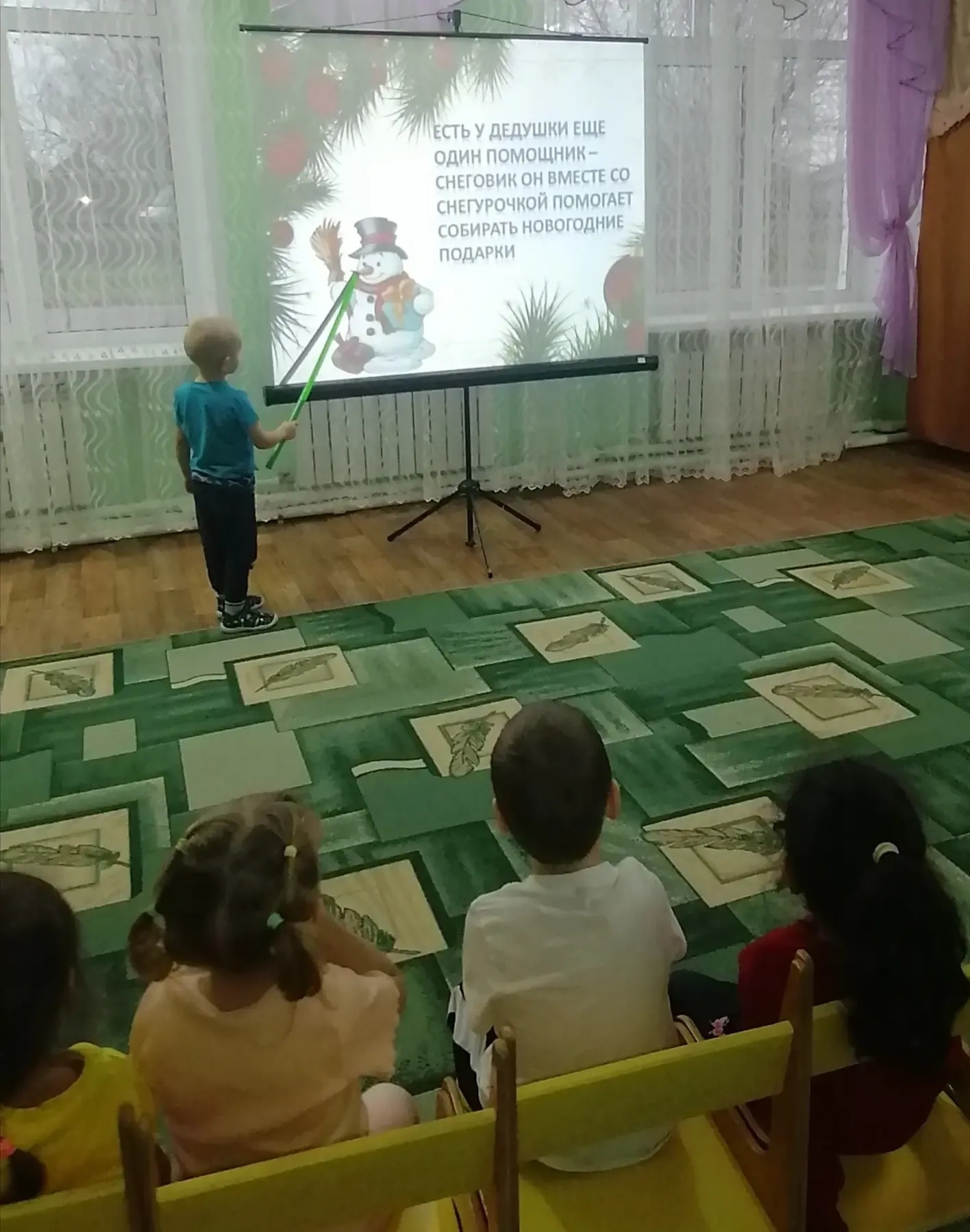 После просмотра презентации воспитанники приняли участие в беседе на тему «Всё про Дедушку Мороза».