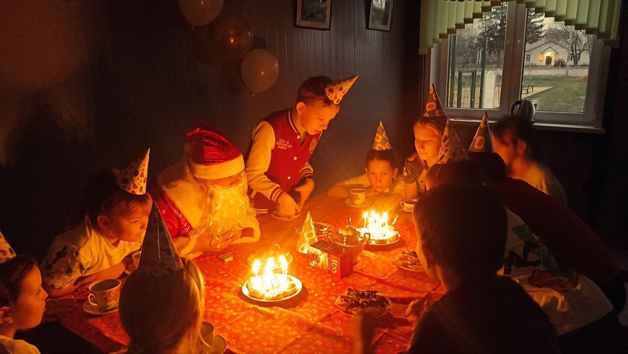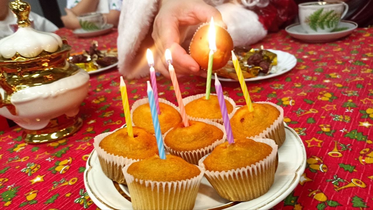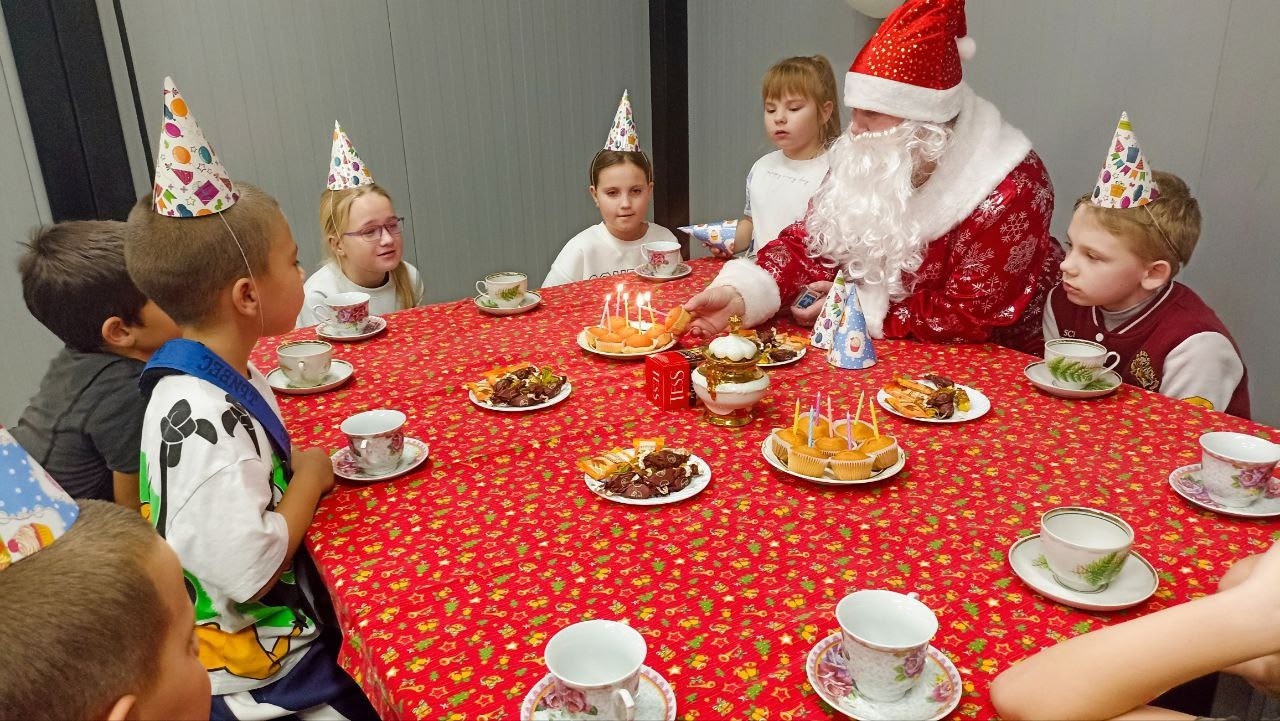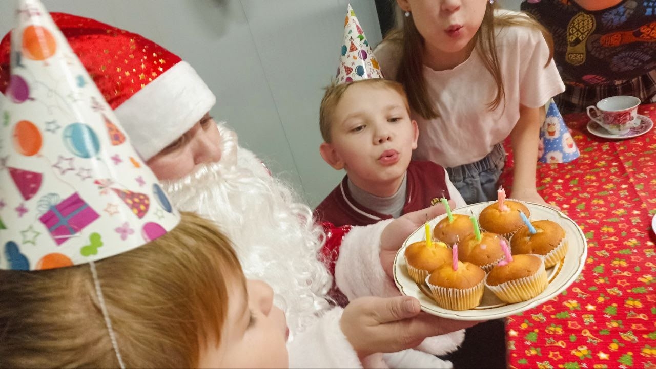 Мальчишки и девчонки общались с добрым дедушкой, а также помогли ему задуть свечи.