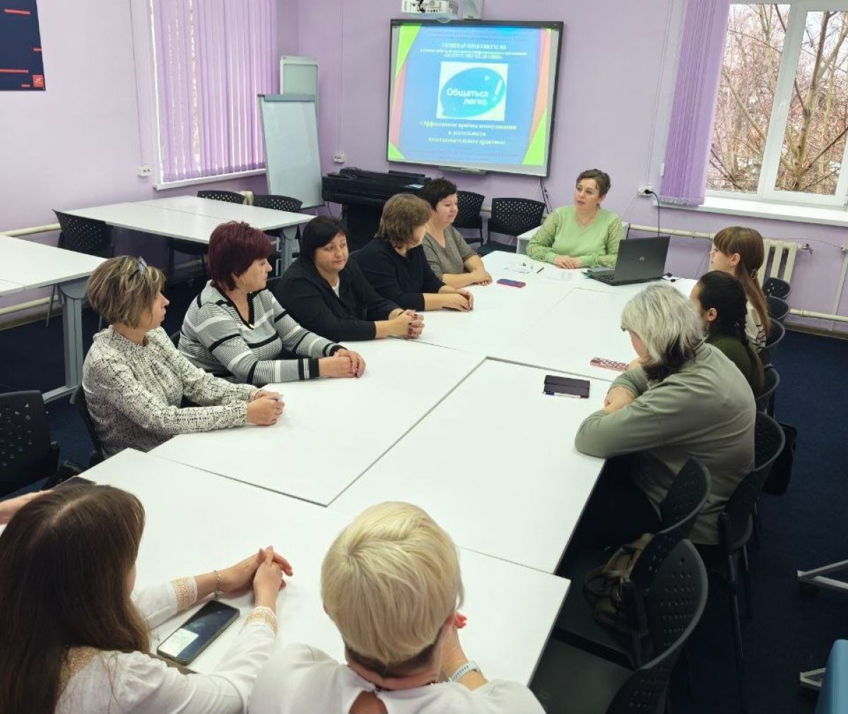Для педагогов городской школы №1 прошло занятие в формате семинара-практикума на тему «Эффективные приёмы коммуникации в деятельности восстановительного практика». Это часть программы профессионального просвещения «Искусство медиации». Организатором выступил социальный педагог Центра «Доверие», который познакомил учителей с ключевыми техниками восстановительного подхода.