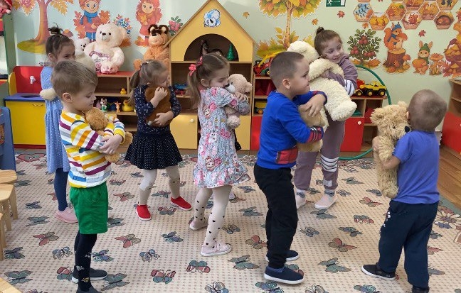 Затем для воспитанников организовали множество интересных игр. Дети катали мишек на игрушечных машинках, устраивали им «пикники» и даже проводили забавные конкурсы, чтобы выяснить, кто из мишек самый ловкий и смешной.