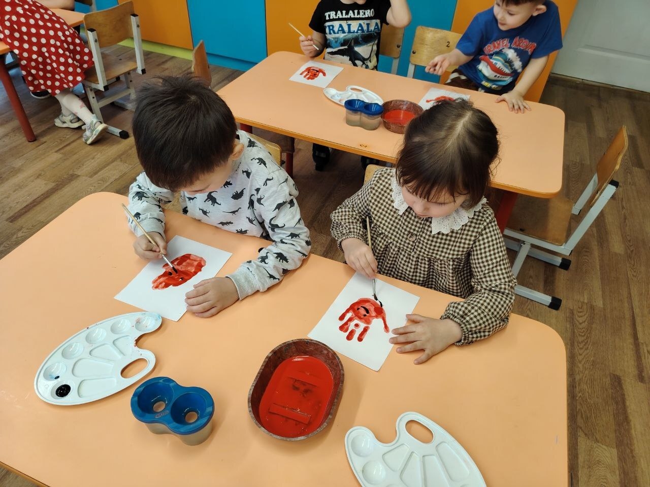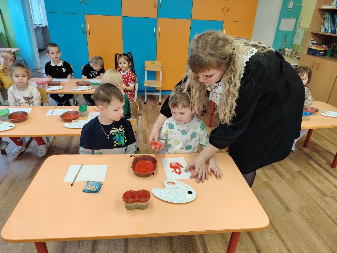 В детском саду «Березка» в средней группе «А» педагог дополнительного образования Мария Картошкина провела увлекательное занятие по рисованию ладошками на тему «Огонь добрый и злой».