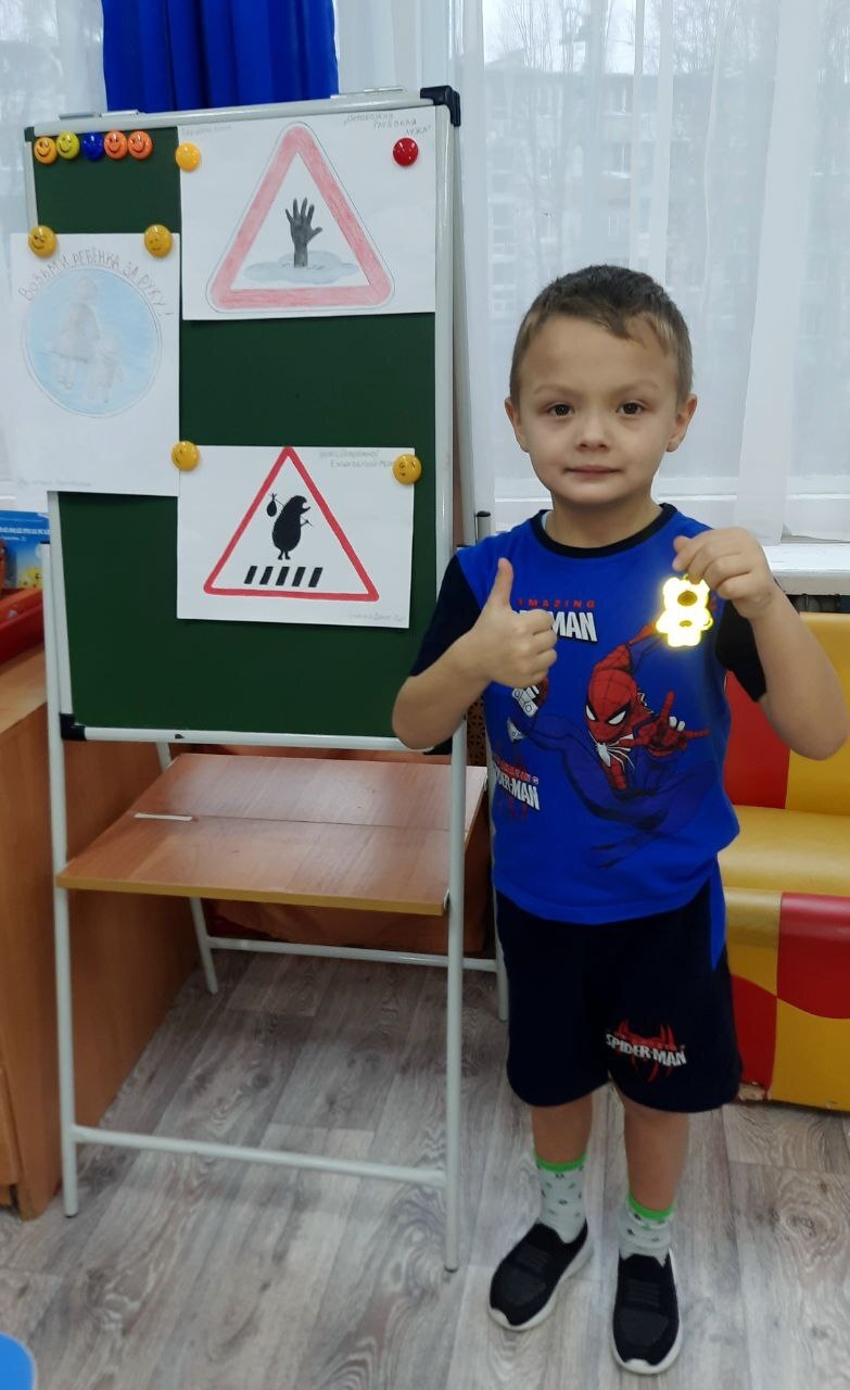 Оценить все изделия пришёл инспектор ГИБДД Иван Корнеев. Он внимательно рассмотрел каждую работу и выбрал самую креативную и понятную - победителем стал воспитанник старшей группы Константин Андреев. За творческий успех он получил в подарок яркий фликер - чтобы всегда был заметен на дороге.