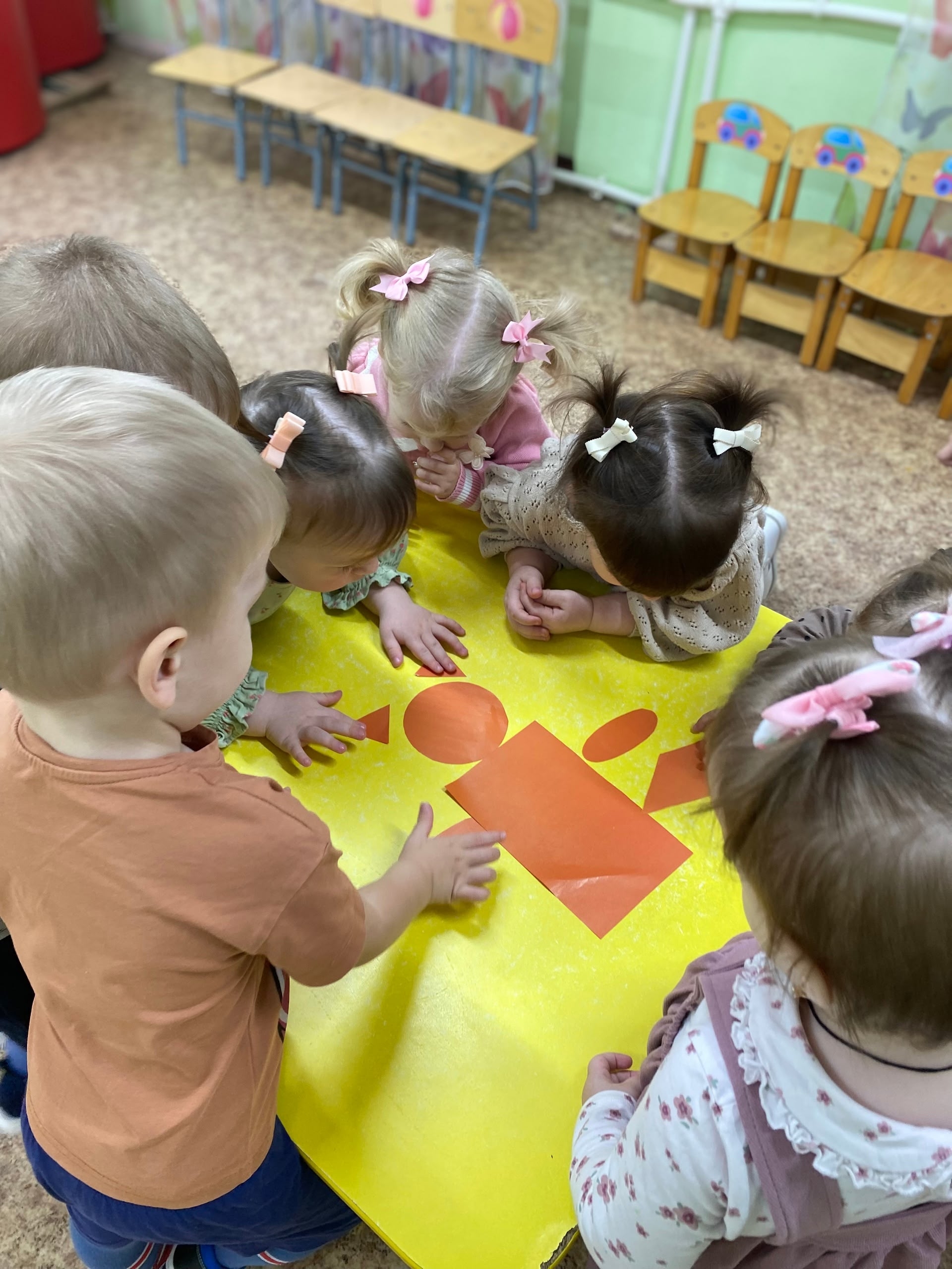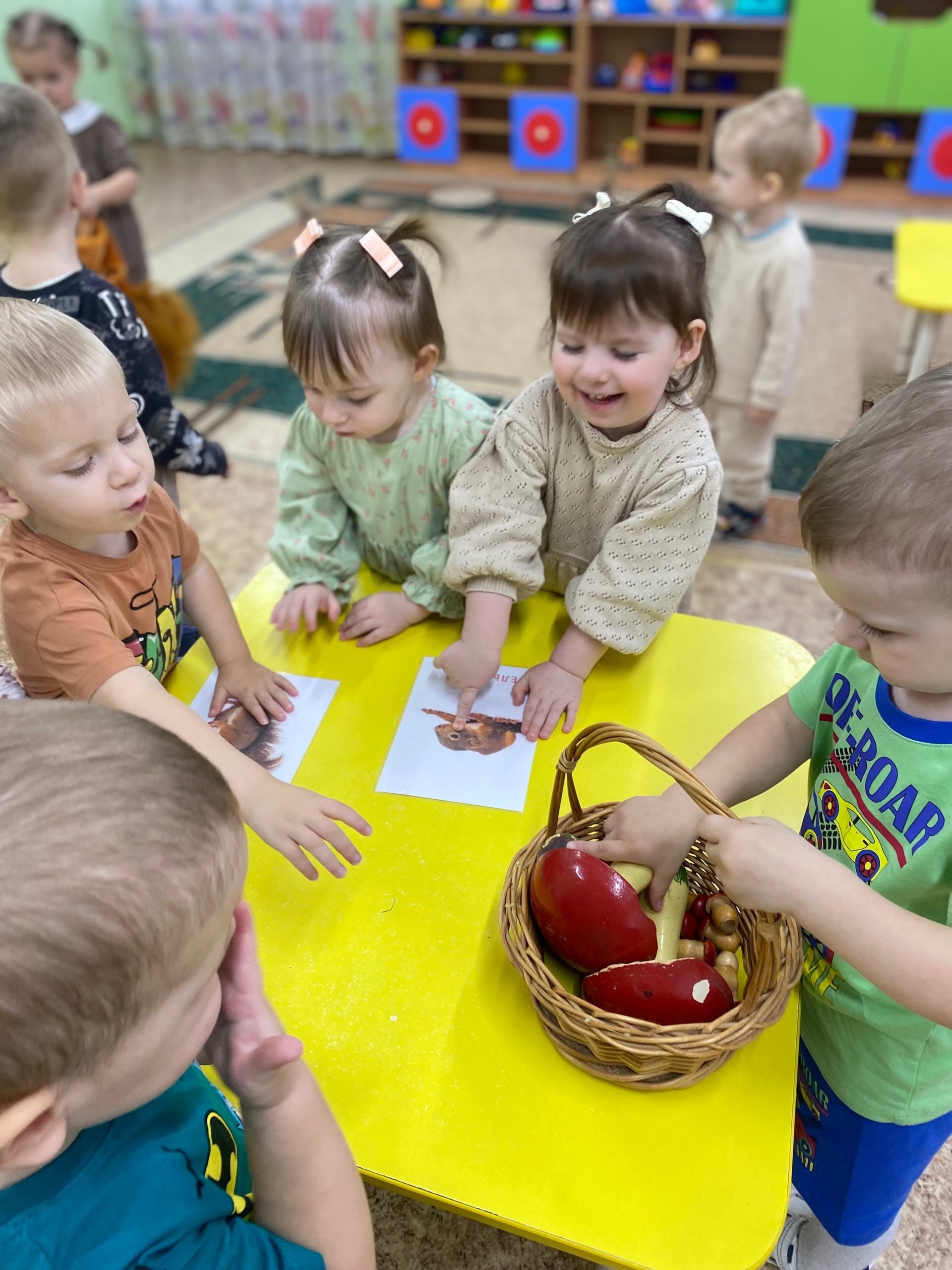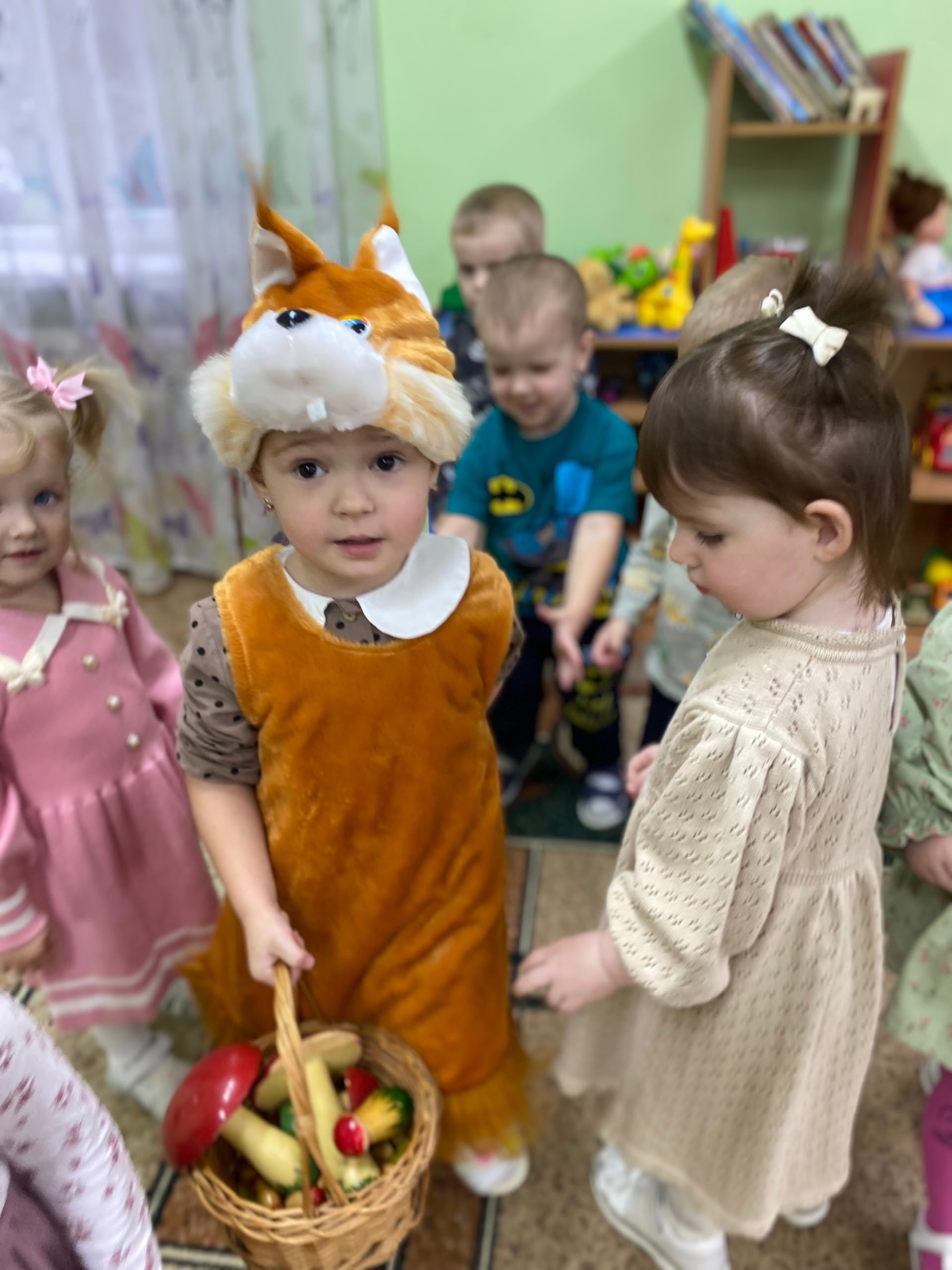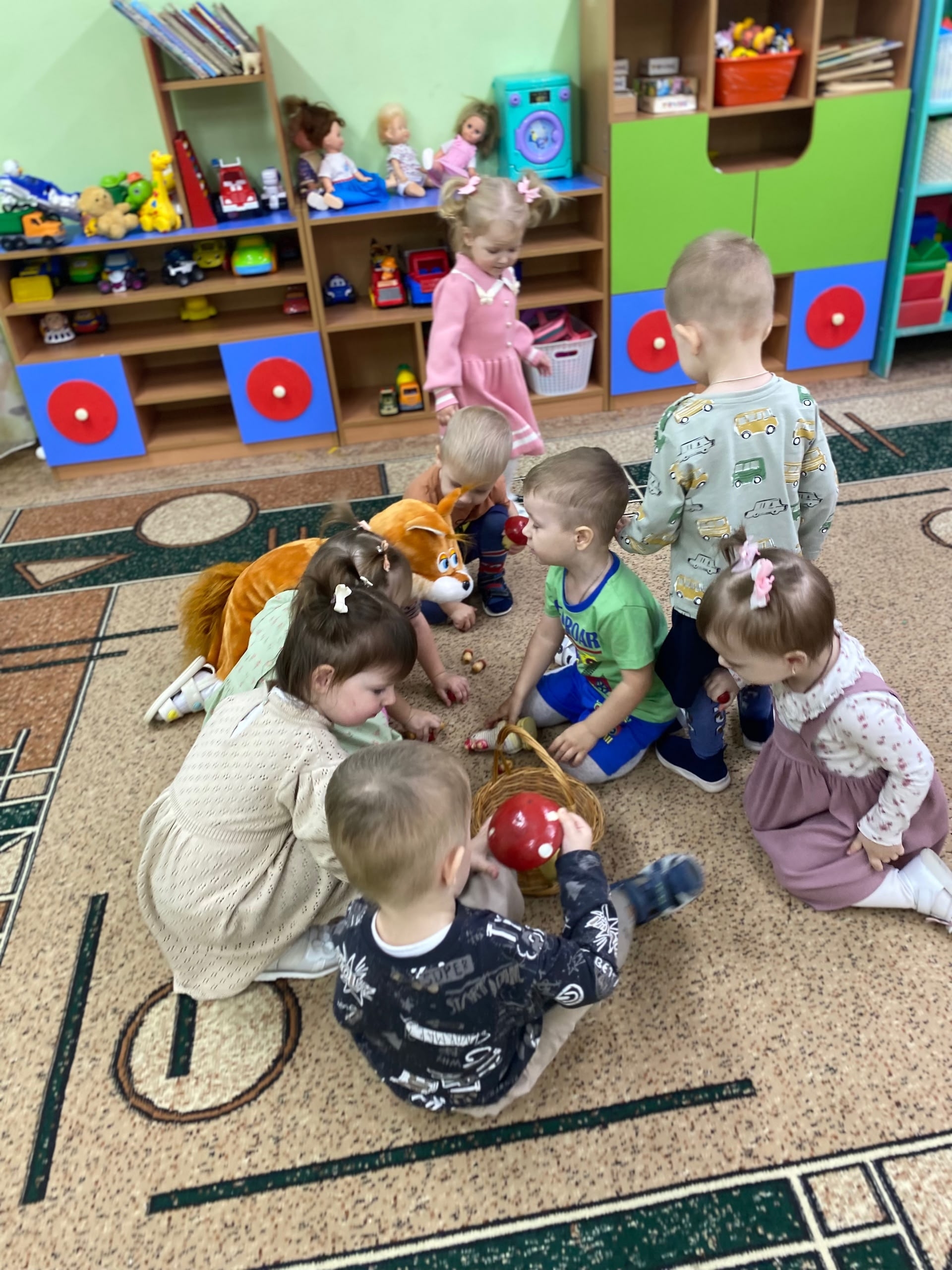 Малыши участвовали в играх: собирали грибочки и составляли образ белочки из геометрических фигур.