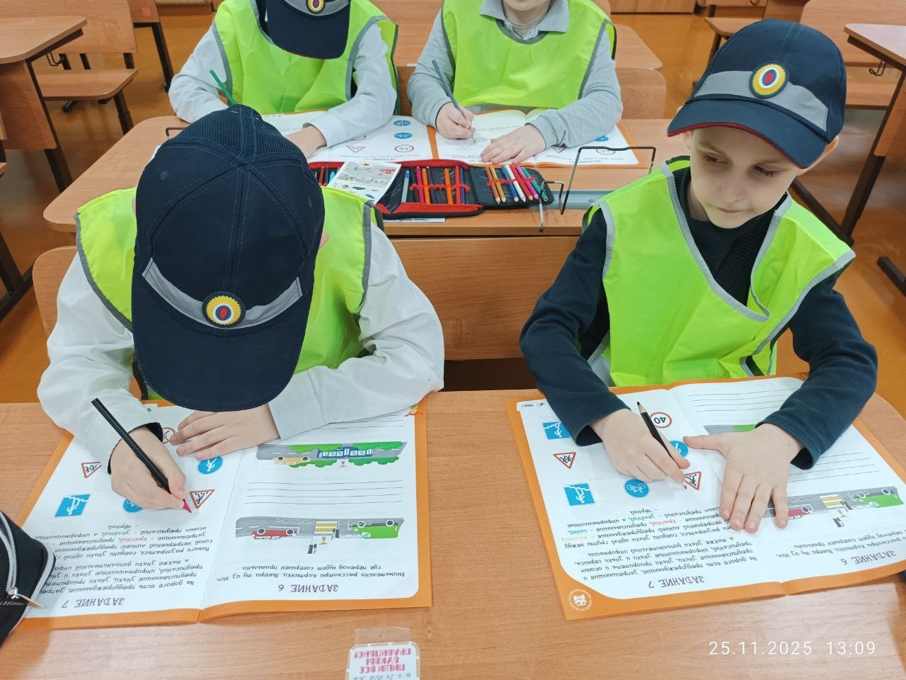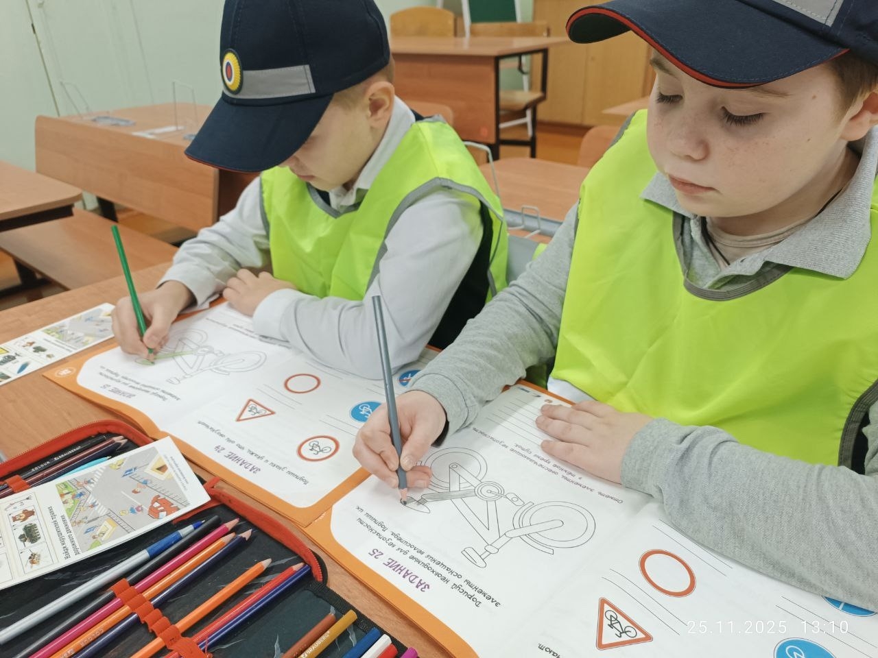 Занятие началось с повторения разрешающих и запрещающих дорожных знаков – важного этапа для актуализации уже имеющихся знаний. Далее школьники в игровой и увлекательной форме закрепили теорию на практике, выполняя задания из рабочих тетрадей, специально подобранные для их возраста.