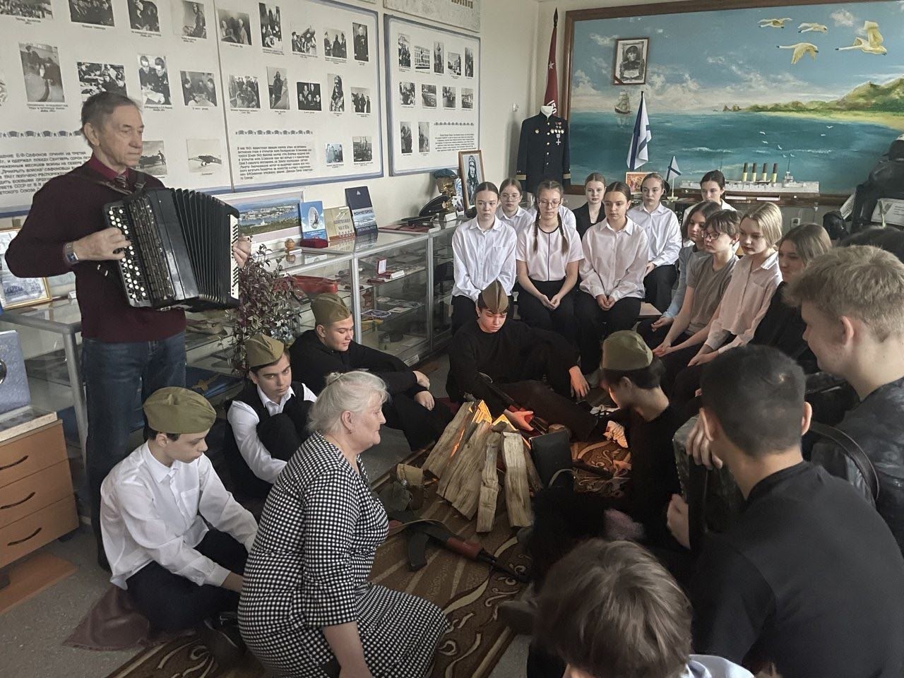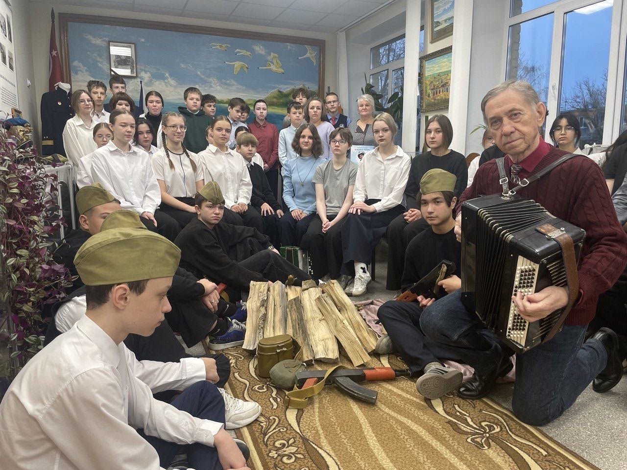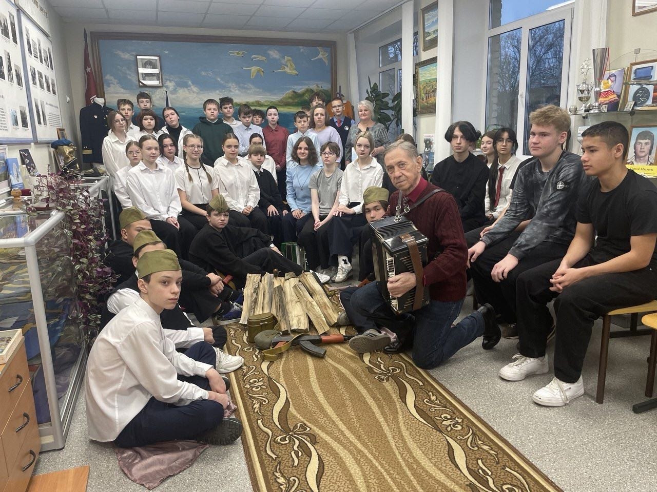 Особенно трогательным моментом урока стало исполнение знаменитых строк под живое сопровождение Виктора Челнокова.