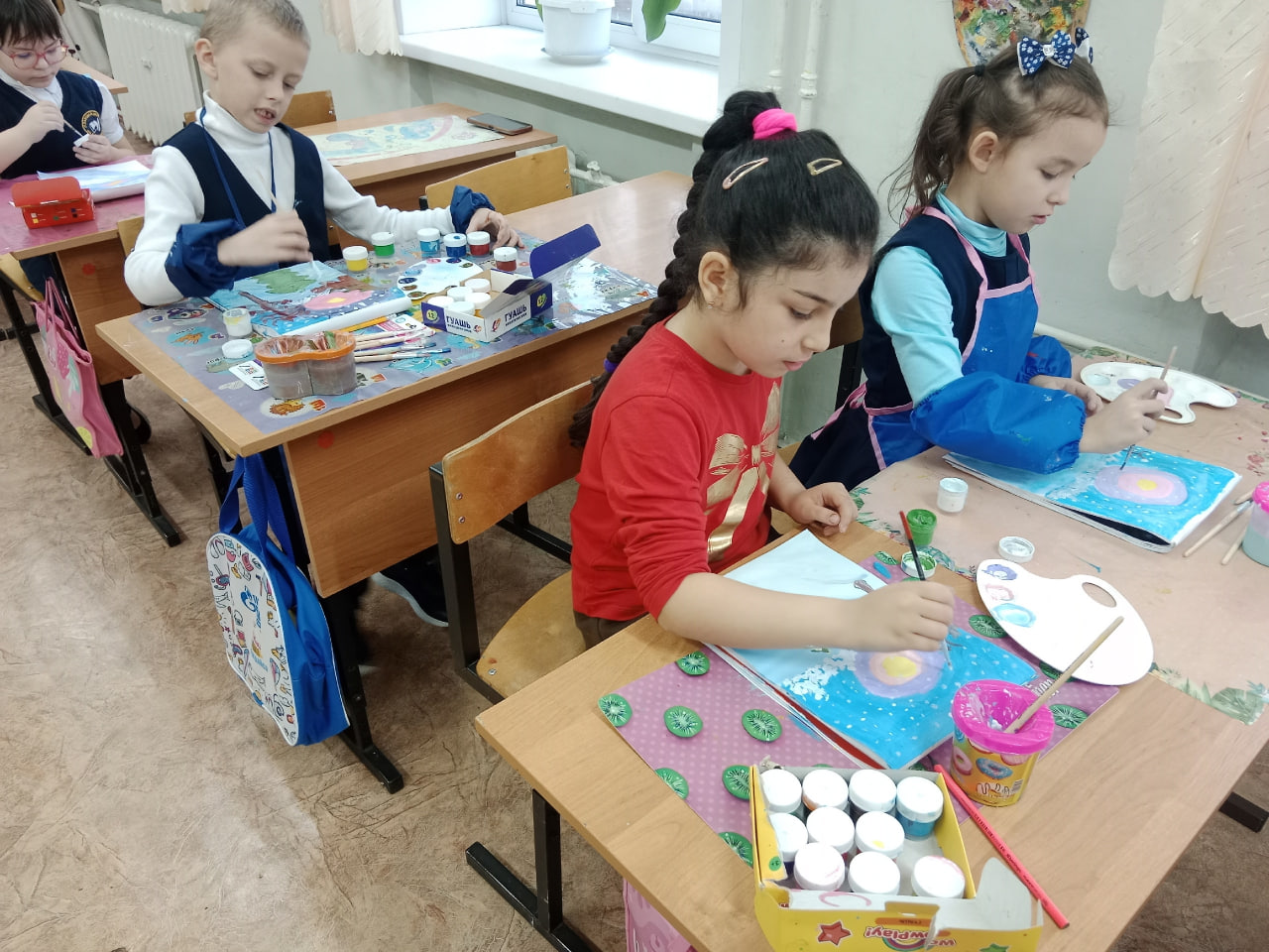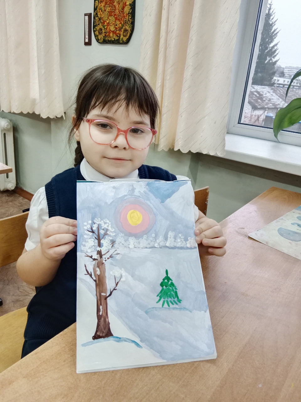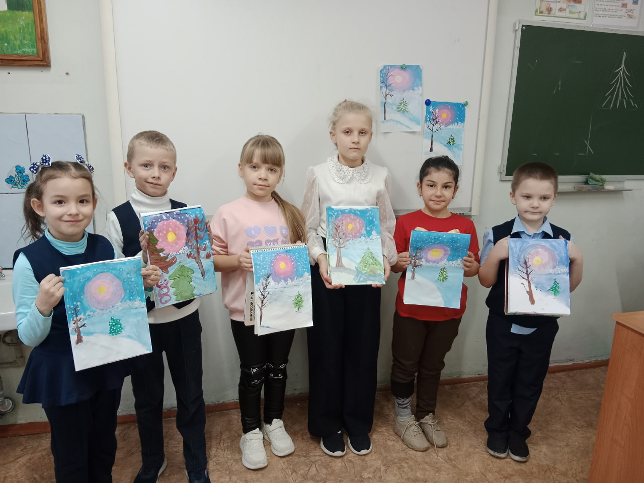 Под руководством педагога дополнительного образования Марии Криушичевой ребята воплотили в своей работе всю красоту и величие зимней природы. Они постарались передать и ощущение морозной свежести и спокойствие заснеженного пейзажа.