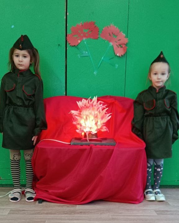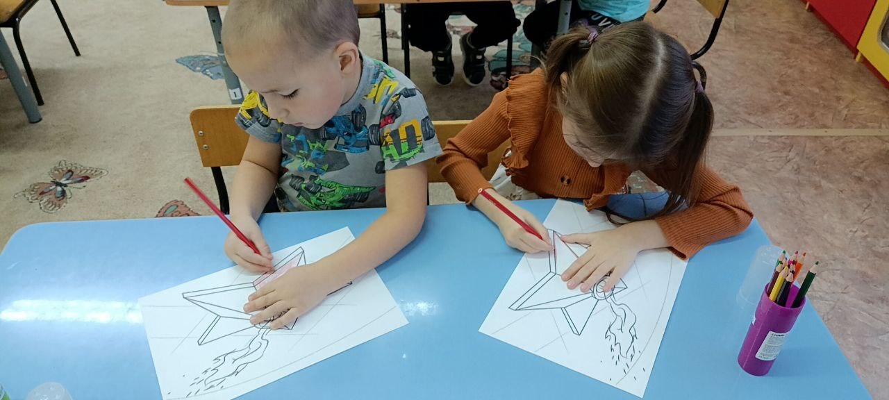 Дети также проявили свою творческую натуру. Они раскрасили изображения вечного огня и неизвестного солдата. А в завершение мероприятия дошкольники приняли участие в символическом карауле у вечного огня.