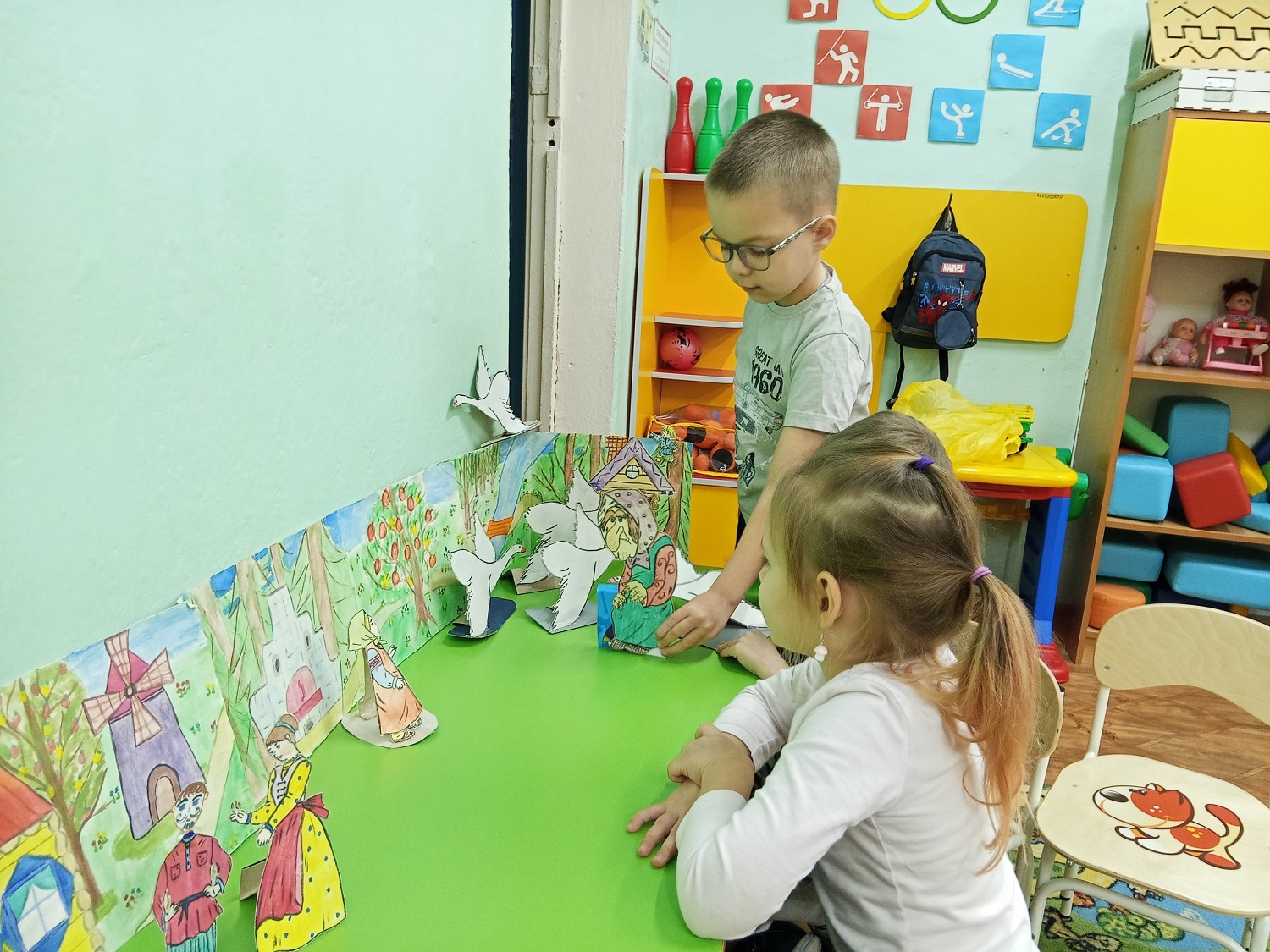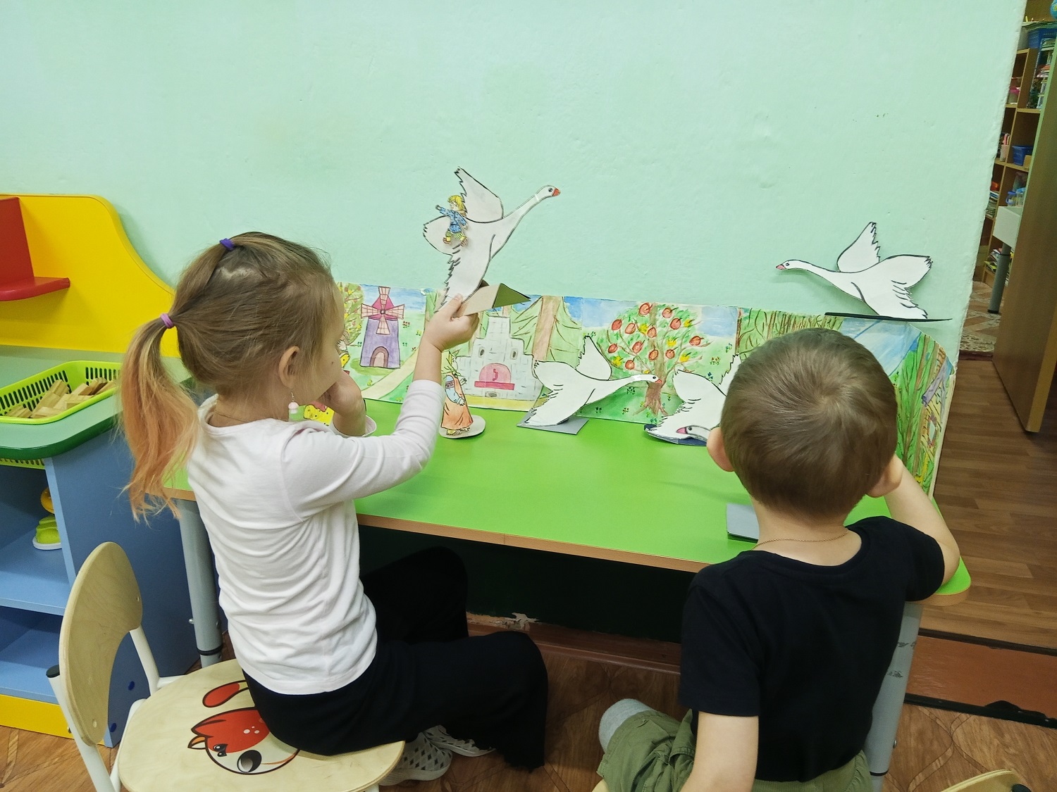 Вот и очередное занятие с воспитанниками было посвящено развитию таких способностей: используя вырезанные из бумаги изображения героев сказки «Гуси-лебеди», дети пересказывали ее содержание, сопровождая это театральными сценками.