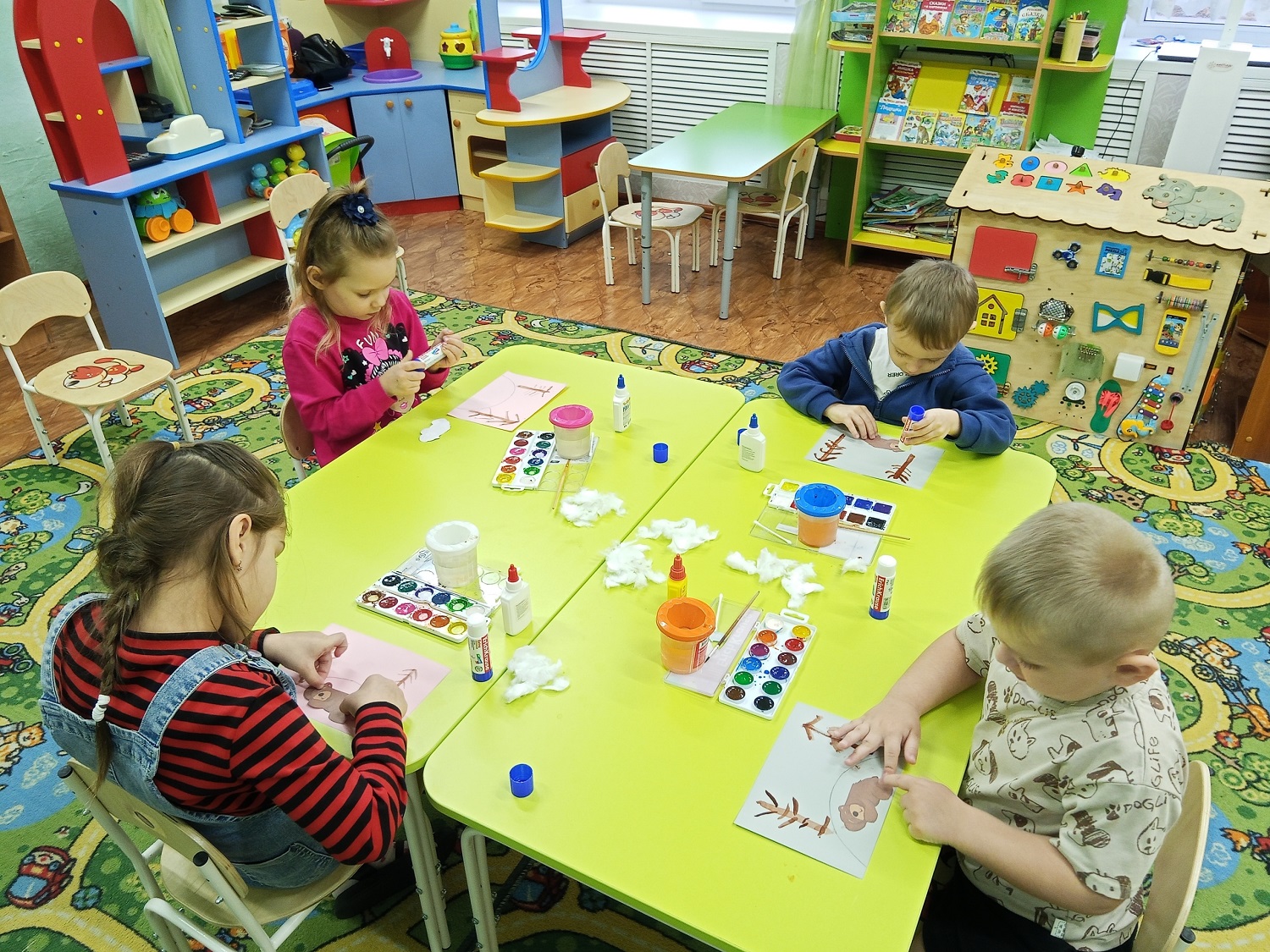 «На занятии по ознакомлению с окружающим миром мы с детьми беседовали о диком животном, его повадках и образе жизни. А затем изобразили мишку, сладко спящего в своей берлоге, используя нетрадиционную технику рисования и элементы аппликации», - написали педагоги.