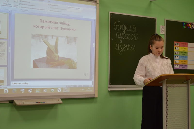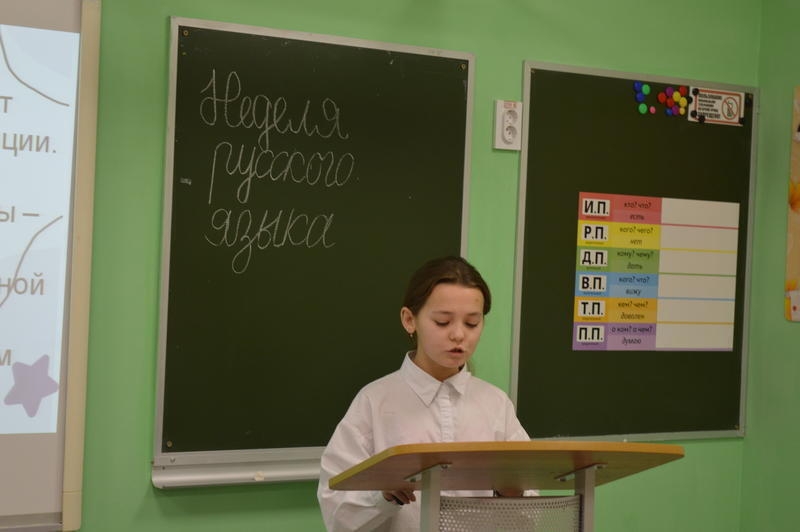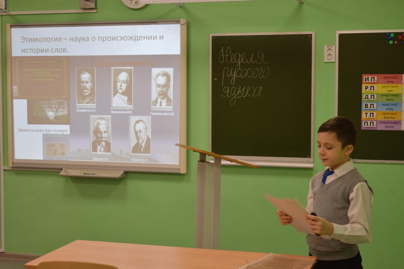 Особое внимание вызвало выступление Даниила Лыгина (6б класс, руководитель — учитель русского языка и литературы А.А. Десятникова). Он рассказал о происхождении слов «пенал», «рюкзак», «линейка», «тетрадь», «ластик», «циркуль», а также предложил участникам отгадать тематические загадки, сделав своё сообщение по-настоящему интерактивным.