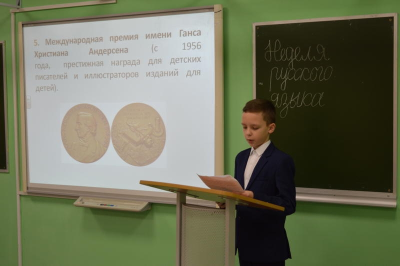 Учащиеся 5а класса под руководством учителя И.А. Чепенко сосредоточились на литературной тематике. Мария Хомутова рассказала о памятниках литературным героям и подарила каждому участнику конференции авторскую закладку. Лев Кутанов выступил с докладом о литературных премиях, сопроводив его яркой презентацией, а в завершение раздал рекомендованный список книг для чтения.