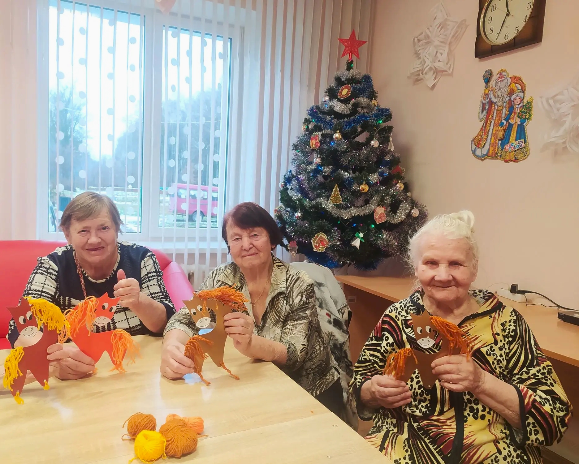 Под руководством культорганизатора отделения получатели социальных услуг погрузились в увлекательный творческий процесс. Из простых материалов — картона, клея и пряжи — участники смастерили своими руками ярких и добрых новогодних лошадок. Занятие стало не только возможностью проявить фантазию, но и поводом для живого общения, дружеской поддержки и совместного праздничного настроения.