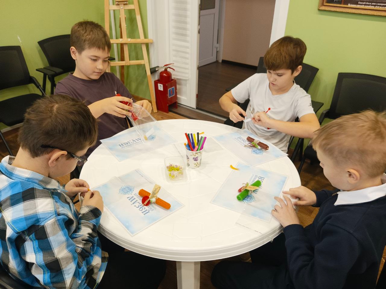 Особый восторг у наших юных гостей вызвал мастер-класс по изготовлению сувенира «Новогодняя свеча». Из разноцветных листов вощины дети своими руками создали настоящие произведения искусства – оригинальные подарки к предстоящим праздникам.