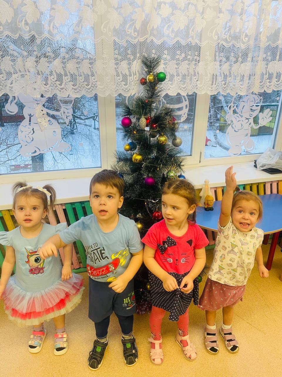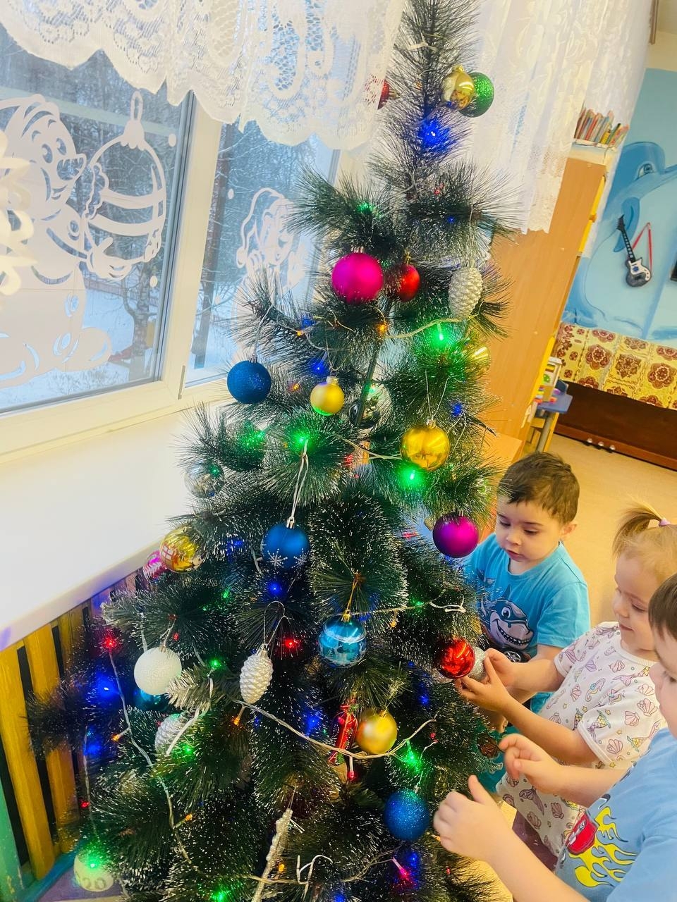 Не осталась в стороне и праздничная елочка. Ребята рассматривали разноцветные игрушки, обсуждали их форму, цвет и значение.