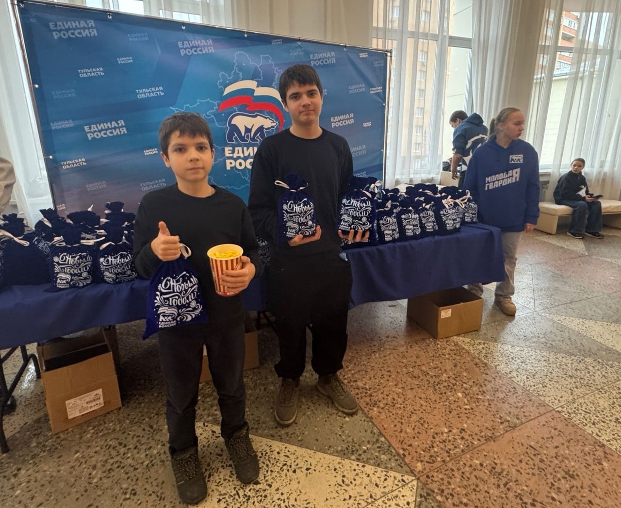 Каждому юному зрителю вручили новогодний сладкий подарок – всего партия подготовила более 1000 подарочных наборов. Так, плавские ребята уехали домой не только с яркими впечатлениями, но и с праздничным угощением в руках.