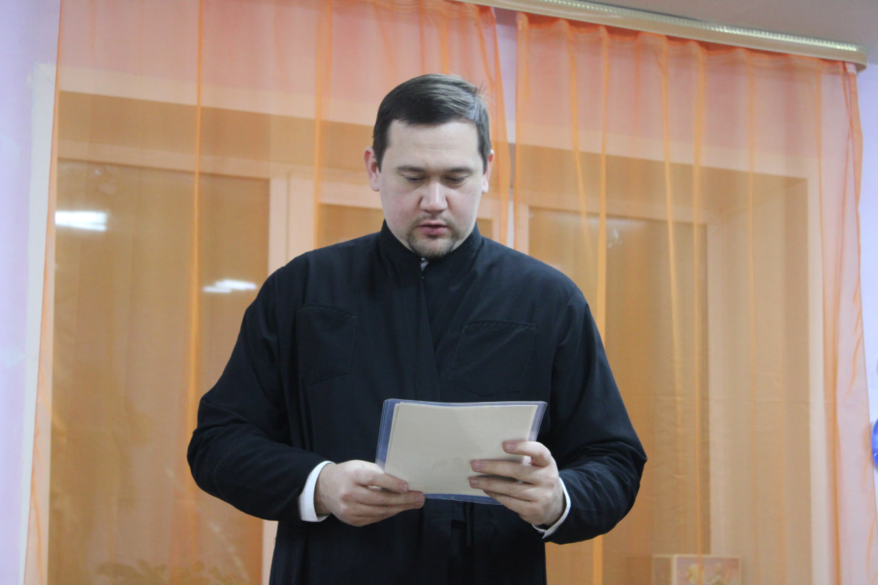 В актовом зале собрались участники и их родители. С приветственными словами к ребятам обратились: диакон Иоанн Мельников, помощник руководителя миссионерского отдела Белёвской епархии; иерей Александр Митин, помощник благочинного по работе с молодёжью; Аветис Аветисян, руководитель шахматного клуба.