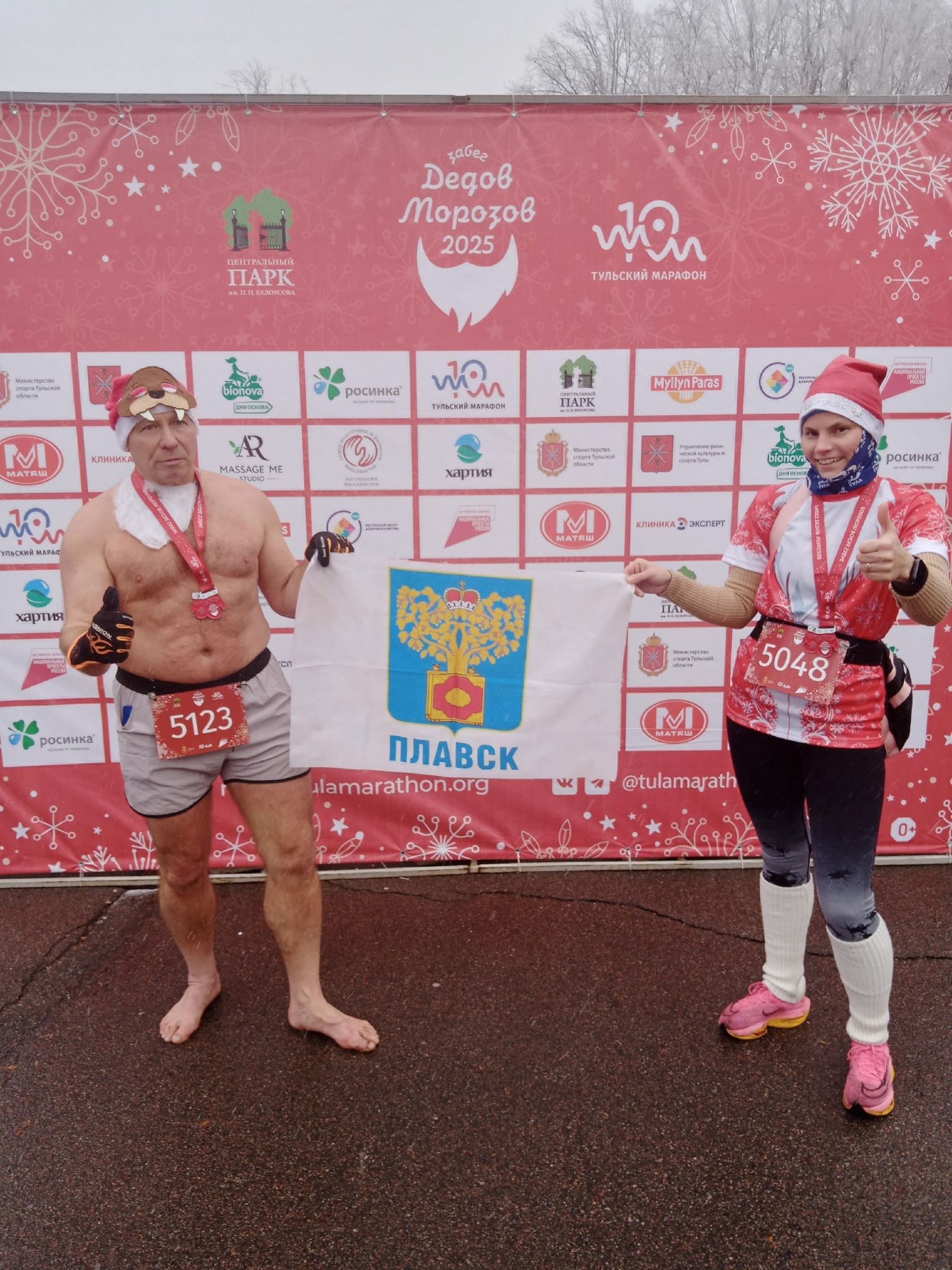 В Центральном парке Тулы состоялся традиционный новогодний забег Дедов Морозов — масштабное спортивное событие в рамках национального проекта «Продолжительная и активная жизнь». Среди более чем 1100 участников из 15 регионов России достойно представили Плавский район сторонники здорового образа жизни Ирина Канаева и Юрий Ревин.