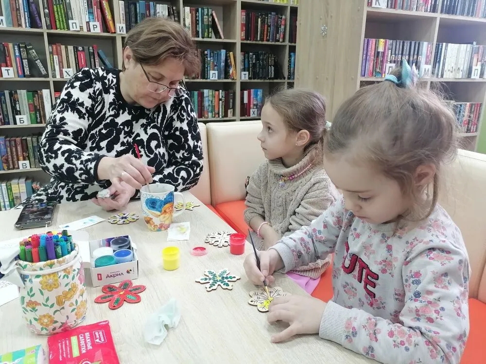 На этот раз дети участвовали в мастер-классах «Что висит на елке? и «Чудесная снежинка». Мероприятие прошло в ходе работы клуба «Мастерская радости». Оно было направлено на подготовку к Новому году.