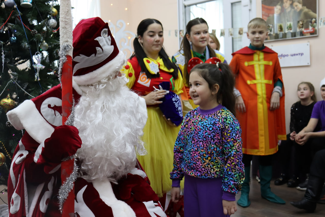 Праздник получился по-настоящему сказочным: волонтеры-аниматоры, Снегурочка, Дед Мороз и другие сказочные персонажи подарили детям праздничное настроение.