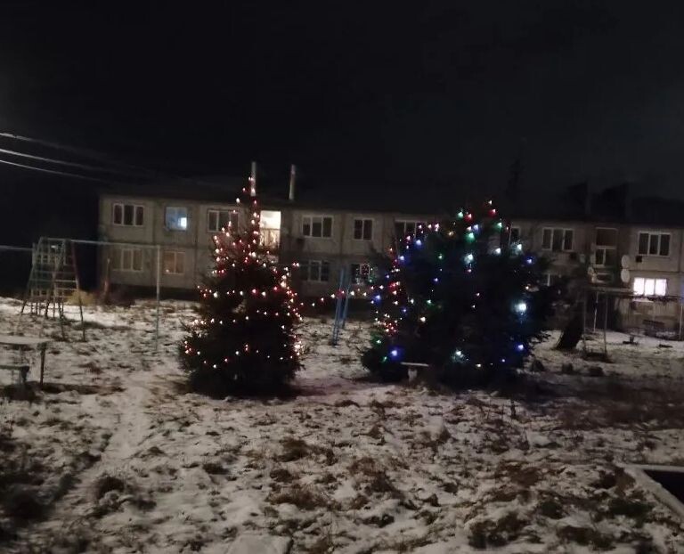 Придомовую территорию в плавском селе украсили новогодние елки