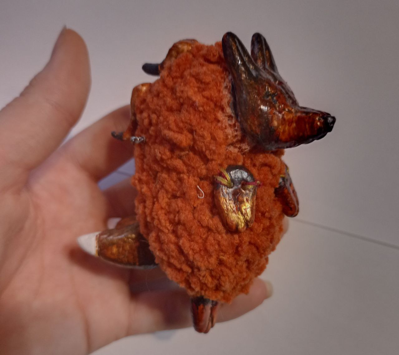 Тельце своего персонажа вы можете связать из любой пряжи, мордочку слепить из композитной глины и раскрасить акриловыми красками.