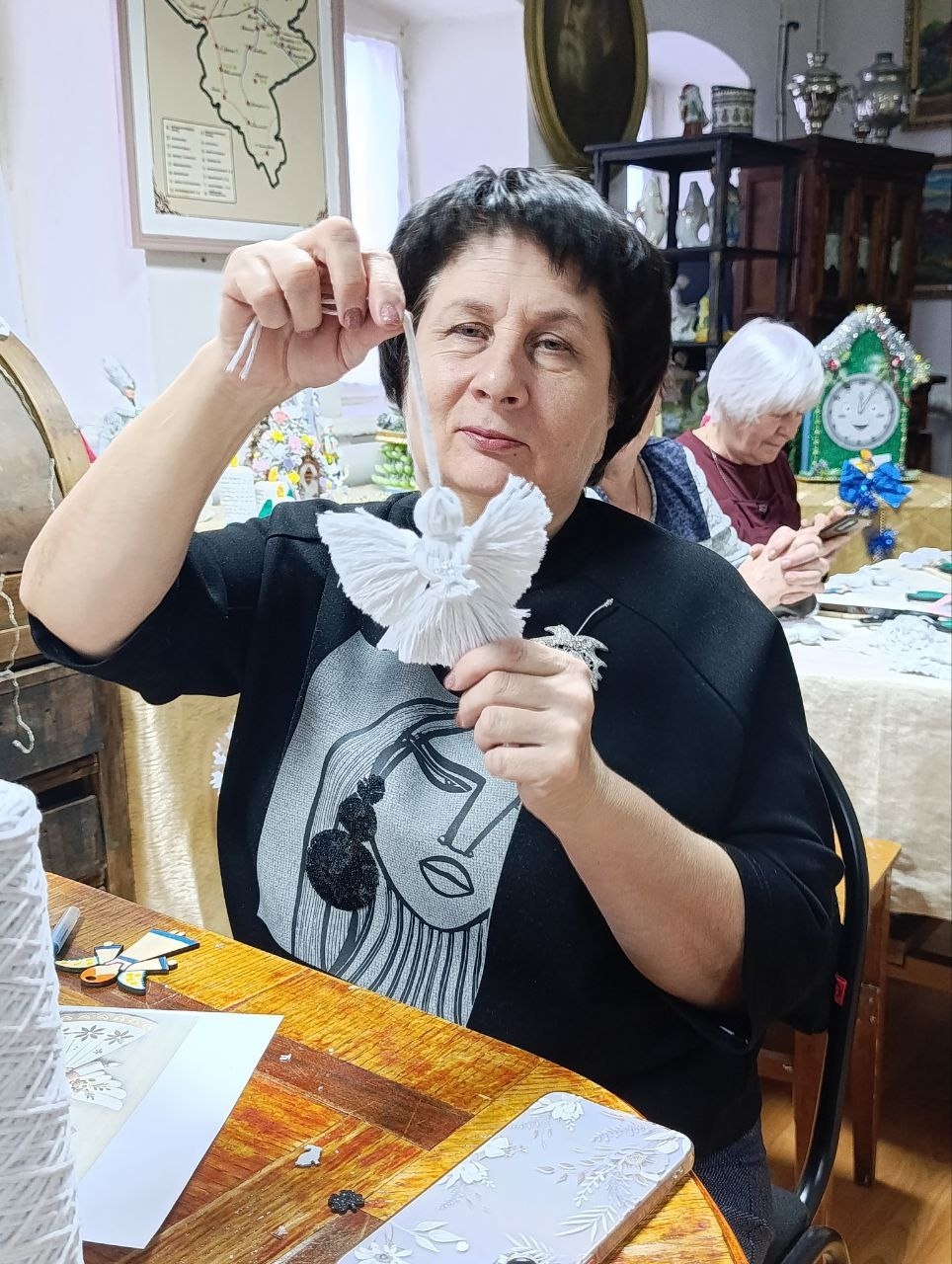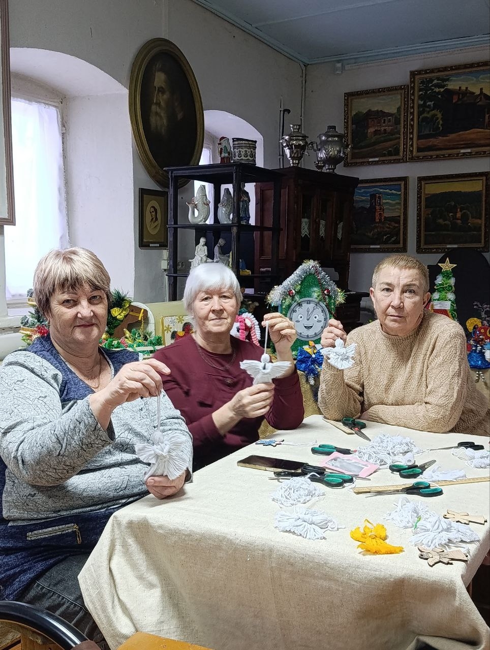 В тёплой и душевной атмосфере краеведческого музея Плавска прошло необычное творческое занятие: участники клуба скандинавской ходьбы «Северный ветер» своими руками изготовили праздничные украшения — ангелочков.