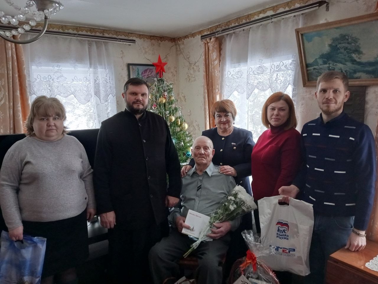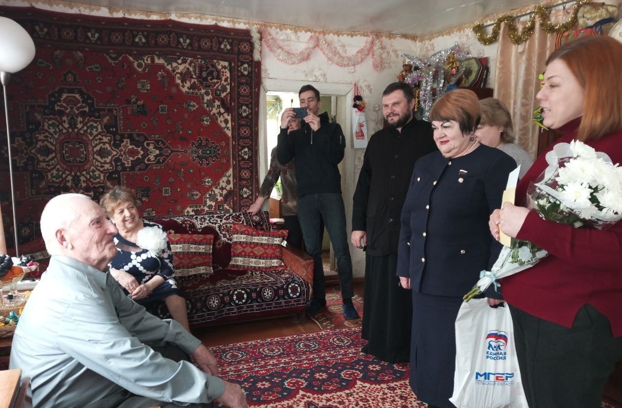 С поздравлениями и подарками к уважаемому земляку пришли представитель администрации муниципального образования Плавский муниципальный округ Тульской области, партии «ЕДИНАЯ РОССИЯ», отдела социальной защиты населения по Плавскому району и духовенства Свято-Сергиевского храма города Плавска.