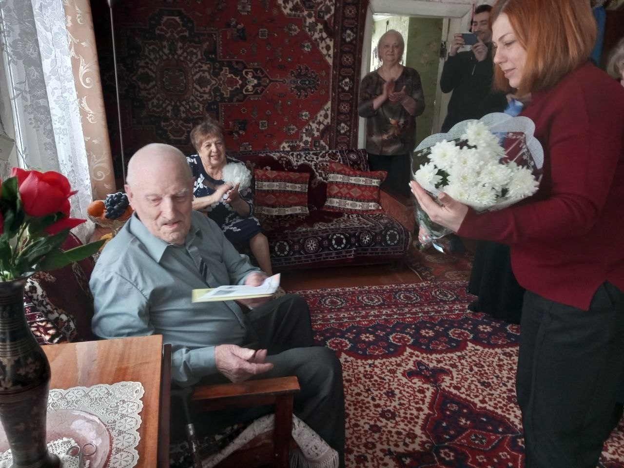 Гости передали Василию Алексеевичу поздравительные адреса от Президента Российской Федерации Владимира Путина и губернатора Тульской области Дмитрия Миляева.