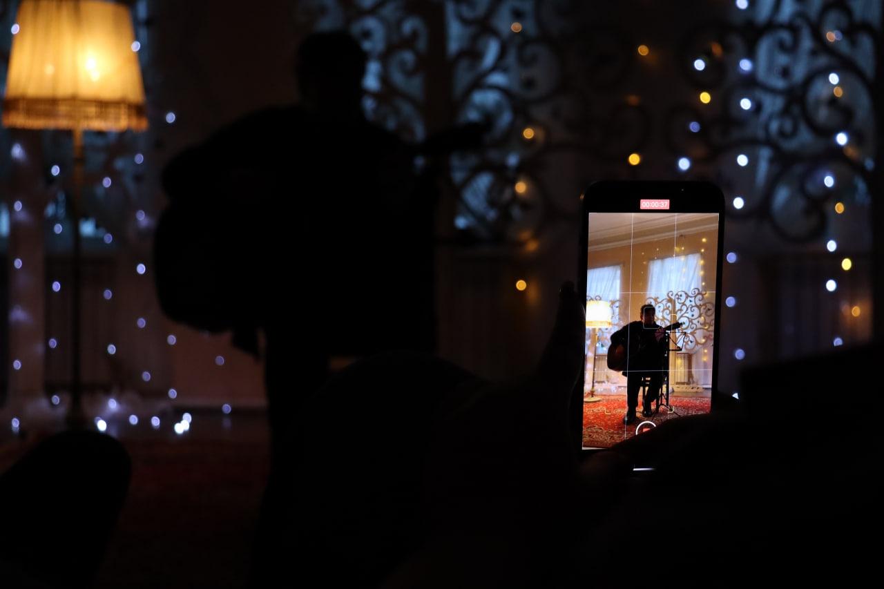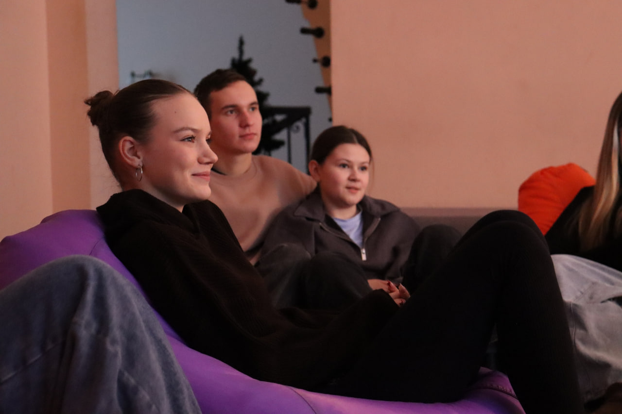 Атмосфера в зале была по-домашнему теплой и душевной. Здесь не было сцены в привычном смысле: только гитара, голоса и открытое пространство для эмоций.