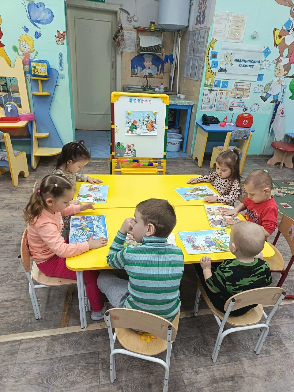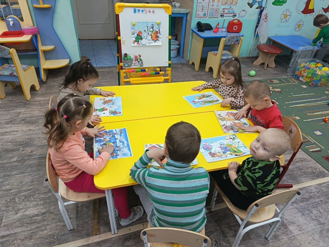 А в младшей группе прошла беседа на тему «Зимние забавы детей». Дошколята рассматривали сюжетные картинки. Малыши охотно делились своими впечатлениями о новогодних каникулах, рассказывая, как они проводили время на свежем воздухе.
