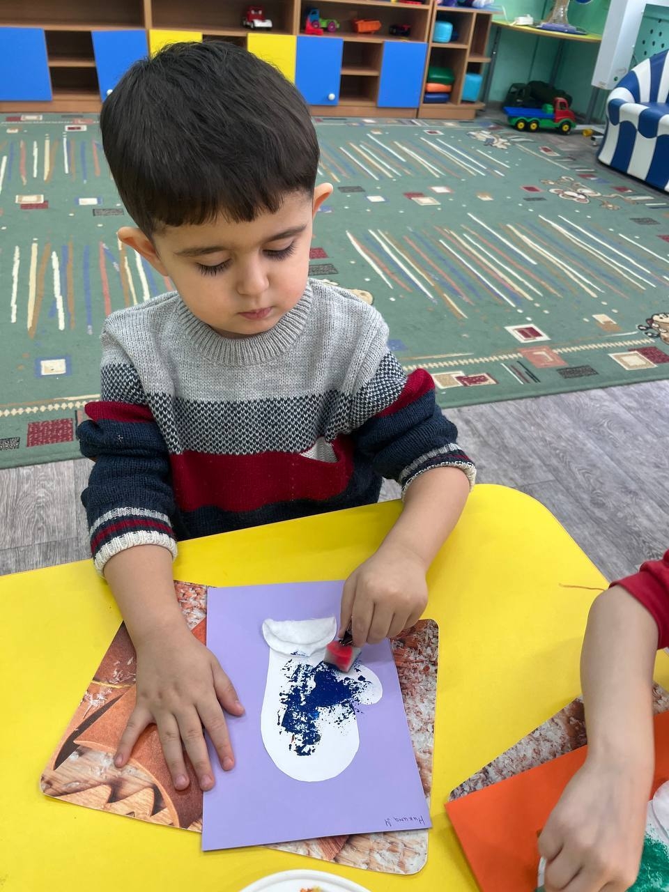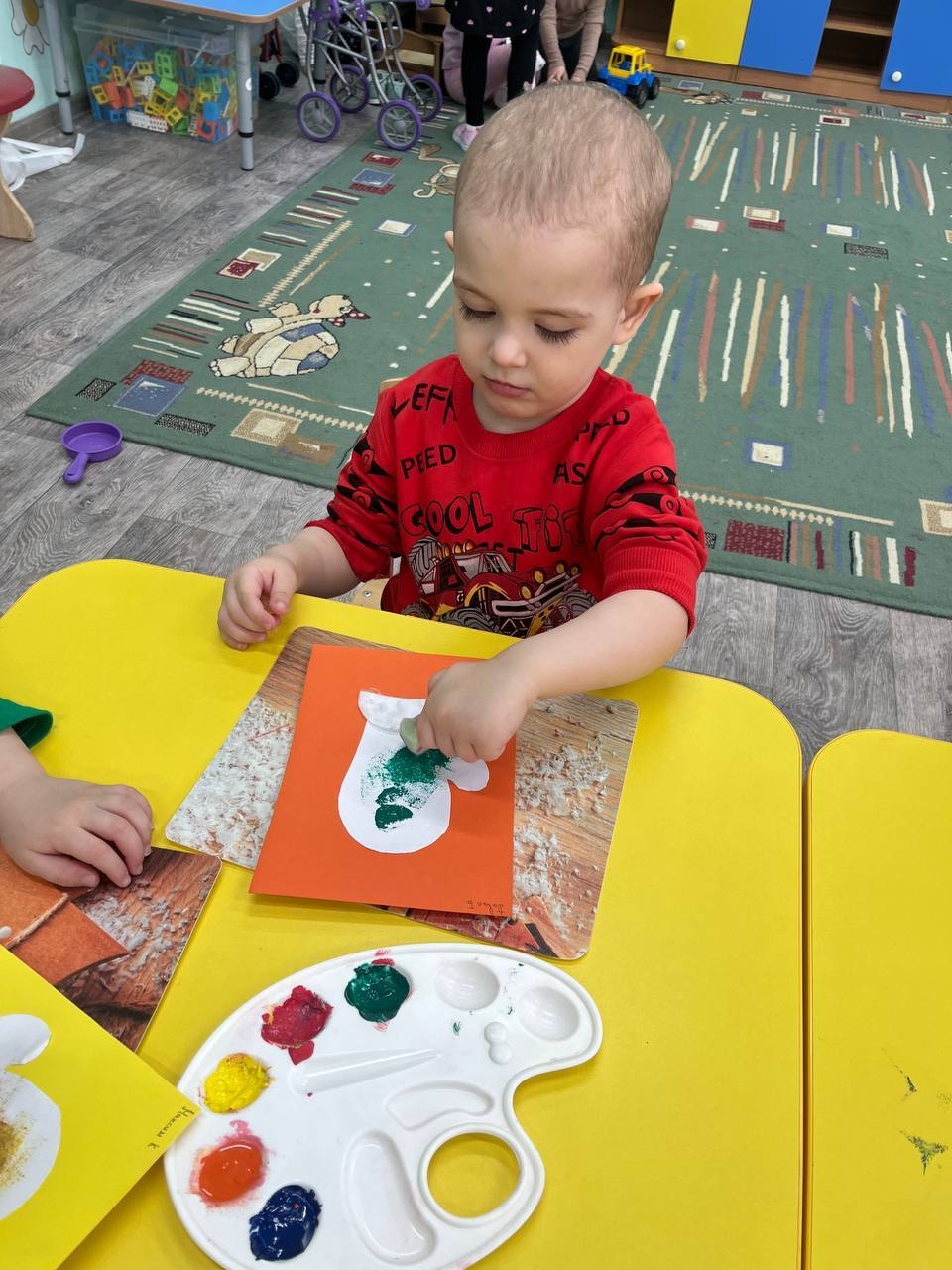 И хотя рисование таким нетрадиционным способом было удобнее, чем рисование кисточкой, оно все равно потребовало от малышей аккуратности.