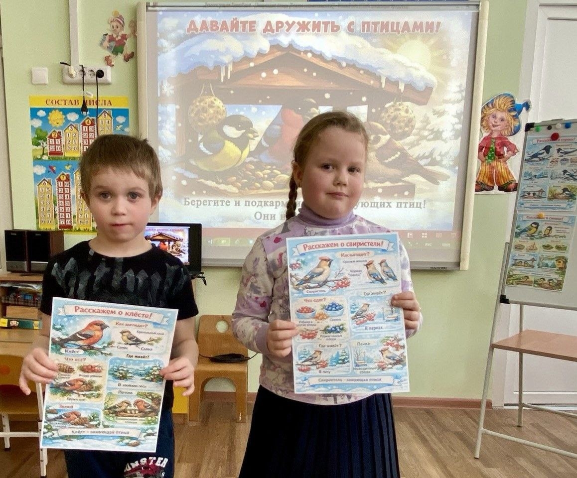 Воспитанники детского сада «Улыбка» в поселке Горбачево вместе со своим воспитателем совершили путешествие в мир птиц, остающихся на зимовку в наших краях.