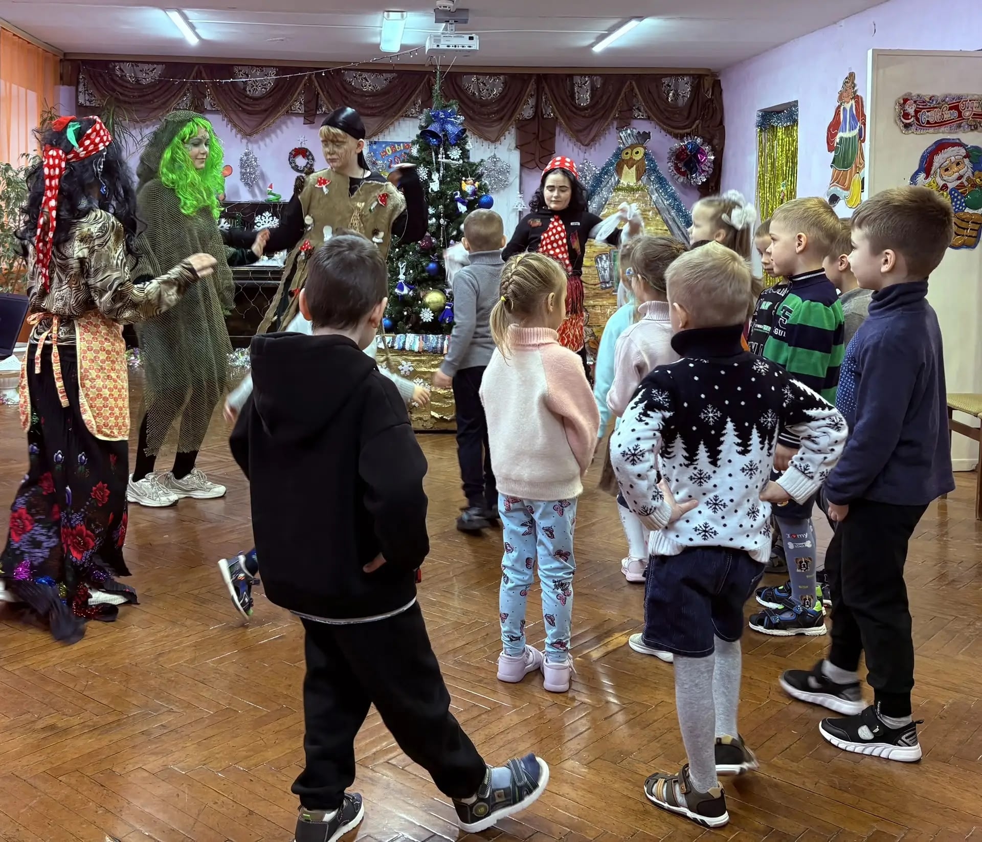 Для ребят подготовили интерактивное приключение: малыши не только наблюдали за сказочными героями, но и сами участвовали в подвижных конкурсах.