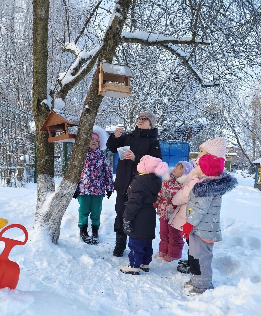 Так, на прогулке дети первым делом решили позаботиться о наших пернатых друзьях. Педагоги детского сада «Улыбка» пгооворили с ними о том, как важно помогать птицам, особенно зимой, когда им трудно находить пищу.