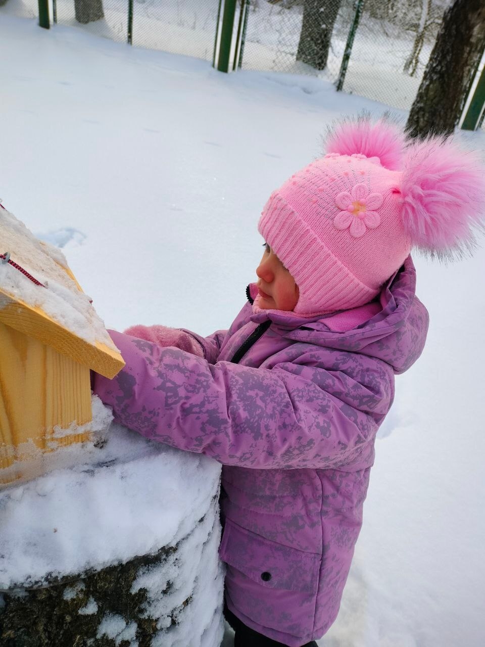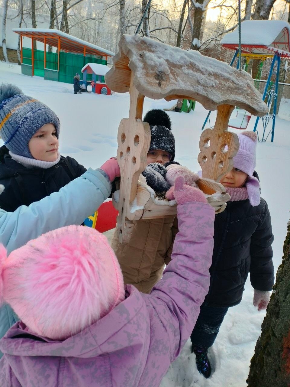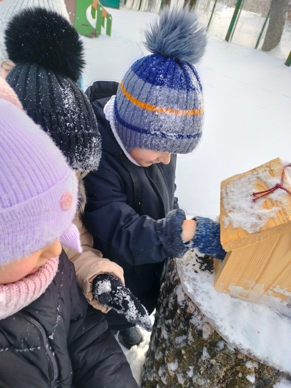 Время прогулки для детей младшей и старшей групп детского сада в поселке Молочные Дворы было наполнено не только любованием искрящимся снегом, но и заботой о пернатом «населении», обитающем в поселке.